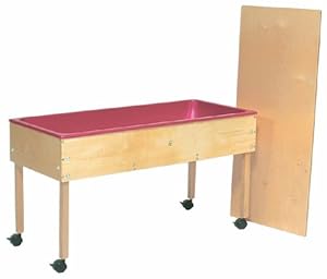 Product Description : Sand and water tables has a 6" deep plastic liner and is constructed of solid maple and birch veneer panels. Includes tub cover. Total height is 24".