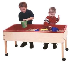 Product Description : Toddler height sand and water table has a 6" deep plastic liner and is constructed of solid maple and birch veneer panels. Total height is 18". Includes civer.